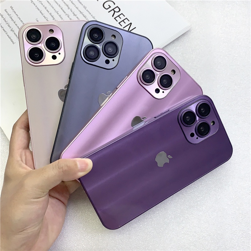 IPHONE Rainbow Auroral Hard Case Bahan Metal Untuk Iphone14 13 12 11 Pro Max CD Casing Pelindung Lensa Tempered Glass