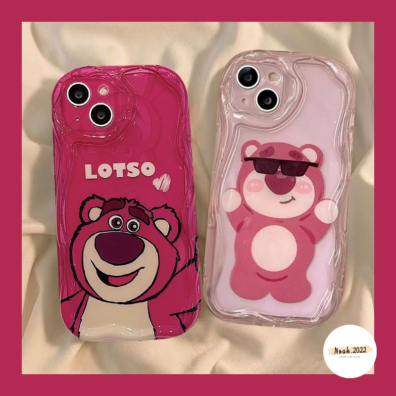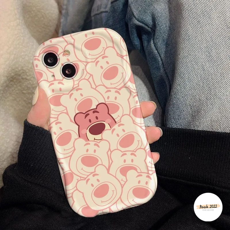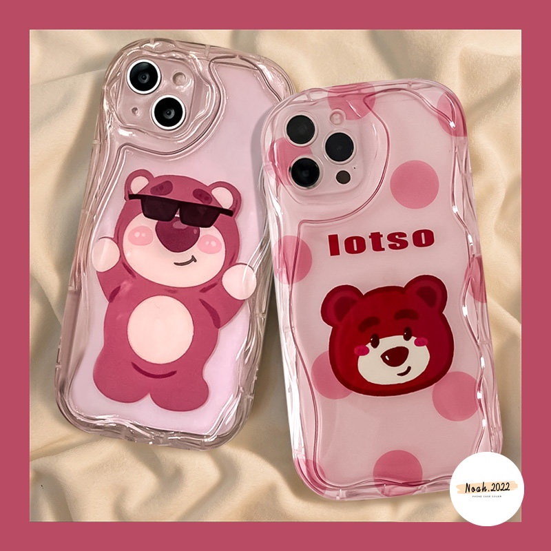 Handphone & Aksesoris > Casing & Skin > Casing & Skin Handphone > IPHONE Rose Red Kartun Imut Strawberry Bear Manyo Case Kompatibel Untuk Iphone7 8 6s 6 Plus11 12 13 14 Pro Max XR X XS Max SE 2020 3D Wavy Curved Edge Glossy Shockproof Soft Cover