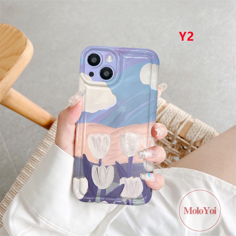 Handphone & Aksesoris > Casing & Skin > Casing & Skin Handphone > IPHONE Shockproof Airbag Fresh Art Flower Tulips Case Kompatibel Untuk Iphone14 11 13 12 Pro MAX 7Plus XR 6 6S 8P Plus X XS MAX Lukisan Cat Minyak Bunga Lembut TPU Silicon Clear Phone Back Cover
