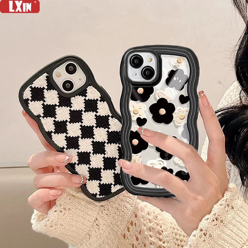 IPHONE Soft Case Kompatibel Untuk Iphone11 13 12 14 Pro MAX iPhone7 8plus 6s Plus XR 14Plus XS MAX SE 2020 Timbul Bunga Berlian Pola Cek Tepi Bergelombang Bening Phone Cover