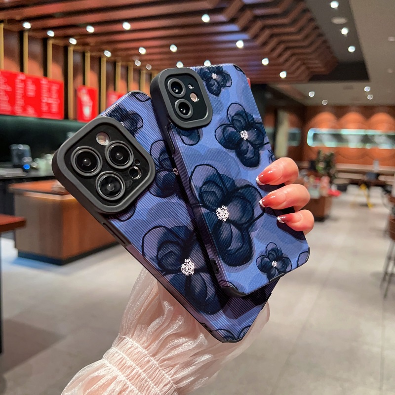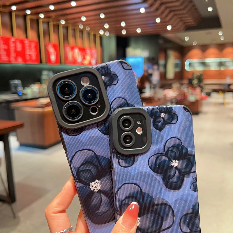 Handphone & Aksesoris > Casing & Skin > Casing & Skin Handphone > IPHONE Soft case Pelindung Bahan Kulit Tekstur Vertikal Ink wash Bunga Untuk Iphone14 13 12 11 Pro Max X XR XS Max7 8 Plus