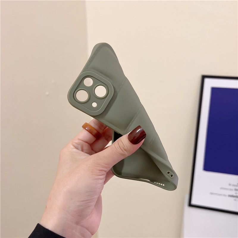 Handphone & Aksesoris > Casing & Skin > Casing & Skin Handphone > IPHONE The Puffer Luxury Down Jacket Phone Case Untuk Iphone13 12 11 Pro X XR XS Max Lembut Warna Solid Silikon Cover Case