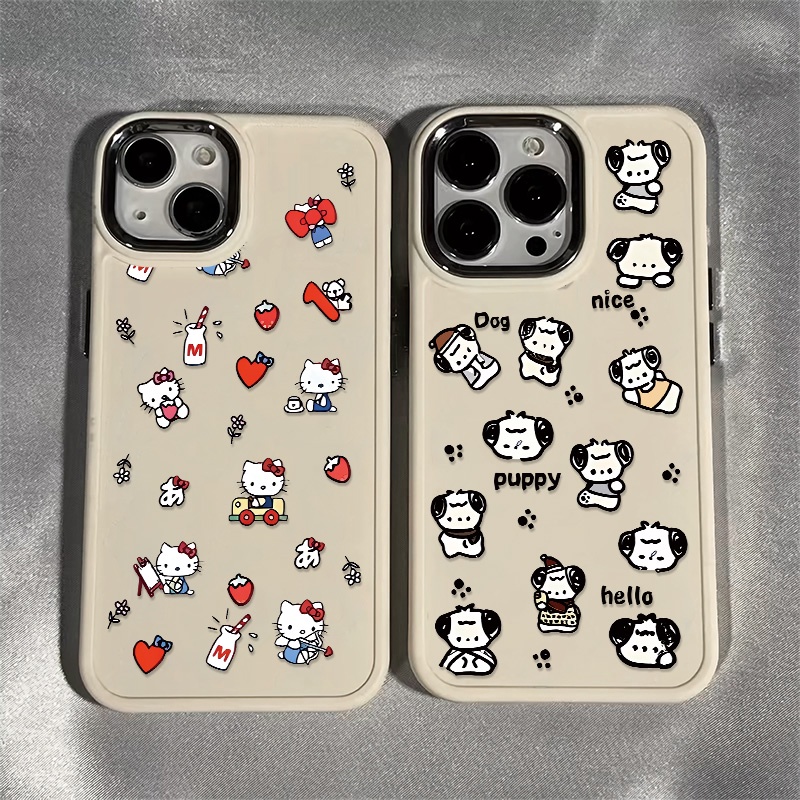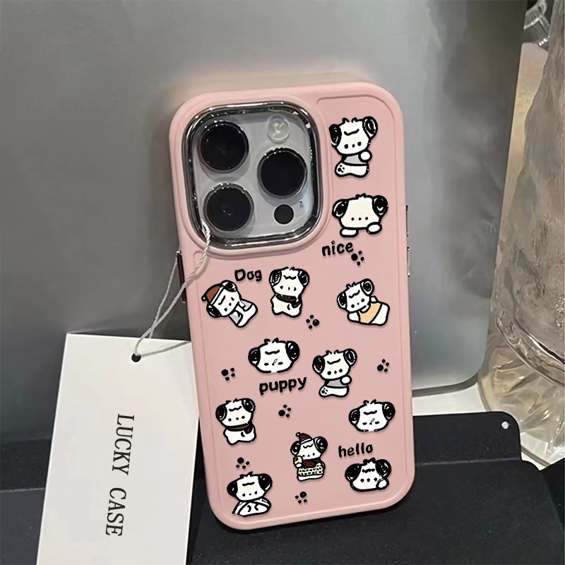 IPHONE Tombol Logam Casing Ponsel Silikon Kompatibel Untuk Iphone11 Pro Max XS X Xr8+7Plus Pasangan Lucu Casing Lembut Shockproof Cover TPU Kucing Anjing Sel Precticer