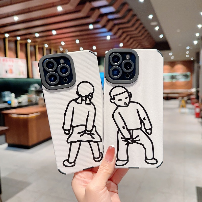 IPHONE Untuk Iphone14 13 12 11 Pro Max X XR XS Max7 8 Plus Aksi Pasangan Menarik Tekstur Vertikal Pelindung Kulit Soft case