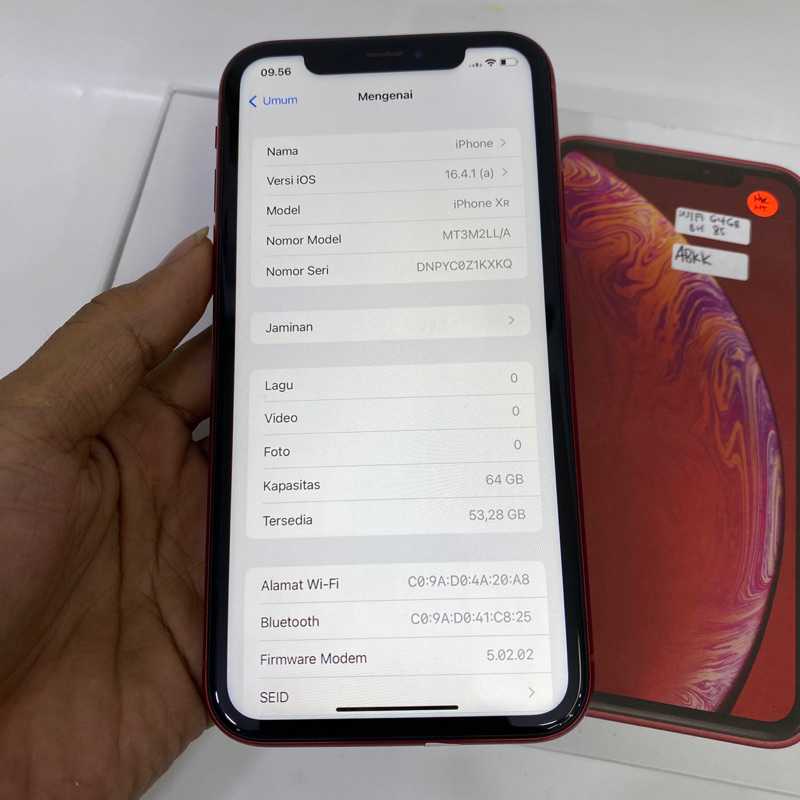•Brand = iphone xr 64gb • imei ke blokir. tidak bisa kartu. hanya wifi aja •Kondisi second = normal siap pake yang pasti blom bongkar •sofware = on ori normal smua •hadware = fisik mlus tidak ada cacat juga •Selebihnya Normal dan on ya •Kelengkapan = unit carger aja ori