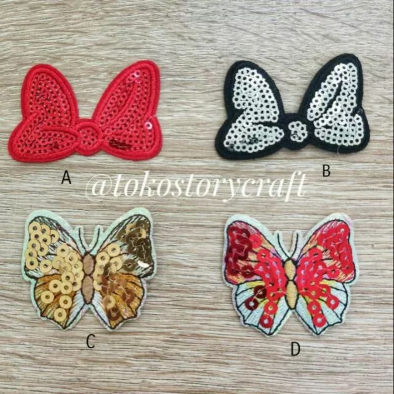 Iron Patch Butterflies, Ribbon / Emblem Bordir Kupu- Kupu, Pita Burci . A. B. Uk 5,5x3,5cm C.D. Uk 4,5x4,5cm Rp 7.000/ Pcs . Iron Patch merupakan aplikasi pakaian yang berbahan bordir (digital). Cara penggunaan dari Iron patch tidak perlu dijahit, cukup tempelkan aplikasi iron patch pada pakaian, jaket, celana, dsb lalu gunakan setrika yang sudah panas (disarankan melapisi iron patch dengan handuk tipis) tekan iron patch kurang lebih selama 20-30 detik dan jangan di gosok. Pastikan bagian lem sudah merekat sempurna. Nb: iron patch tidak cocok digunakan di media berbahan kulit, plastik, dan parasut .