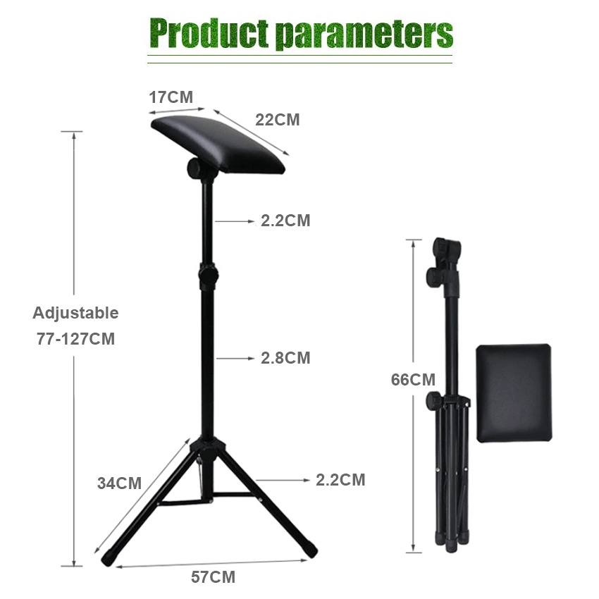 Spesifikasi★ Bahan: spons (Sandaran Tangan), logam (Bracket) Warna hitam Tinggi yang Dapat Disesuaikan: 77-127cm Ukuran Pad: 17*22*4 cm/6.69*8.66*1.57 inci Berat: 2,5 kg
