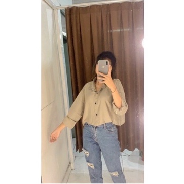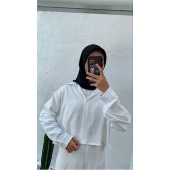 Detail iseven p KEMEJA HANIN CROP | AIRFLOW CRINKLE | KEMEJA WANITA