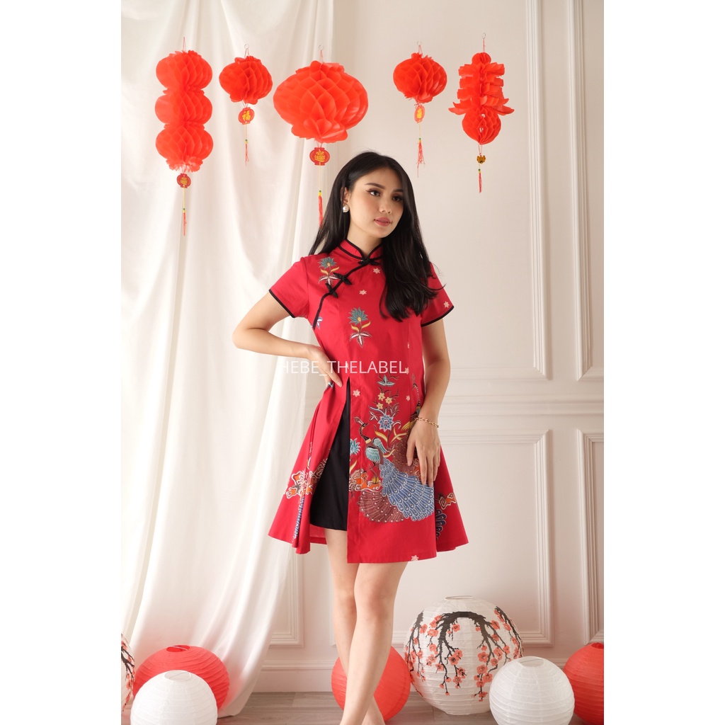 Detail Ishana Red Batik Cheongsam Chinese New Year - (- Men Short-Nadine-Mutia-Hera-Brenda-Kora-Intan)