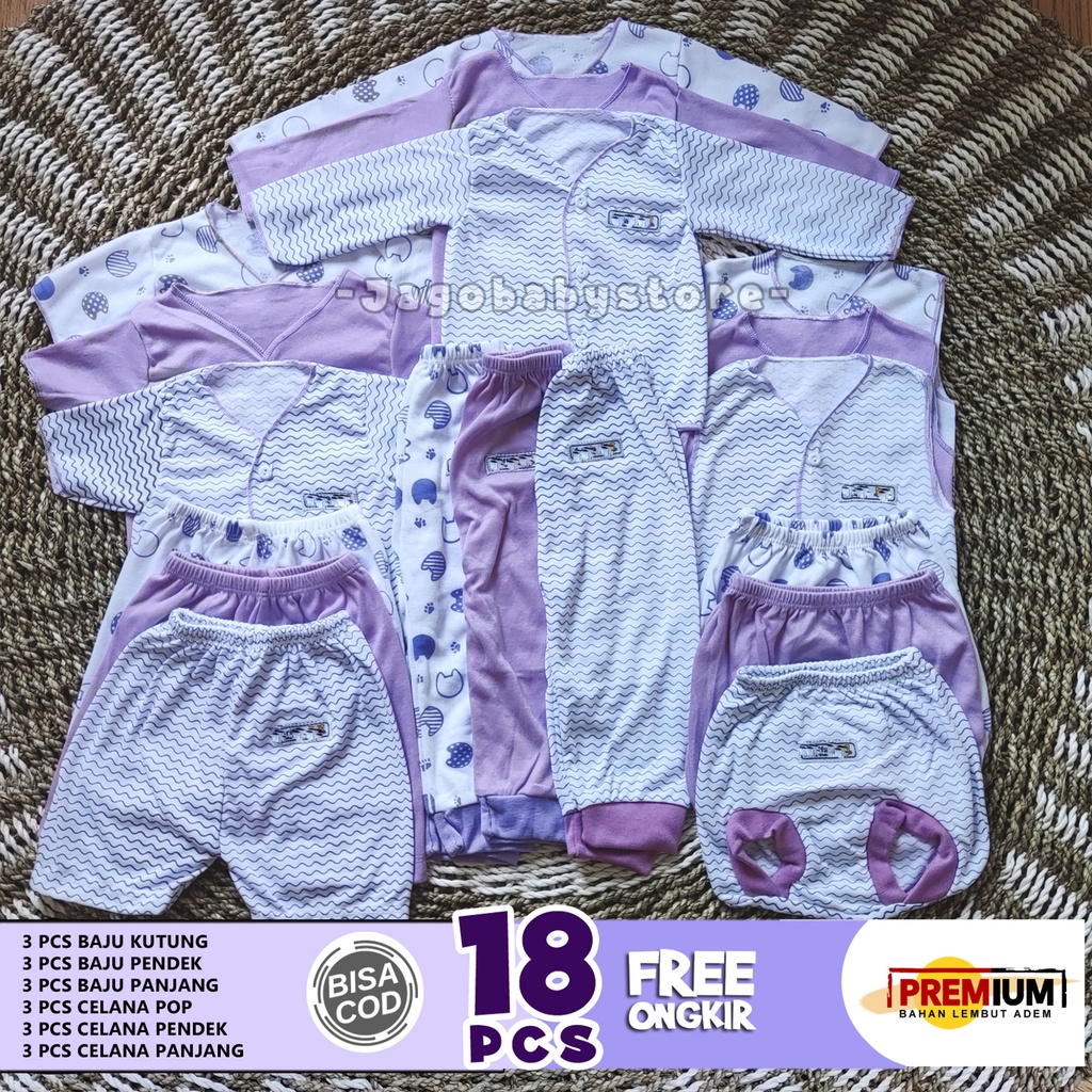 Ibu & Bayi > Set & Paket Hadiah > Isi 18 PCS Paket Lahiran Gift Set Baju Celana Bayi Baru Lahir Usia 0-3 Bulan Newborn Aneka Motif - Hampers Bayi - Set Kado Bayi - Pakaian Bayi Newborn