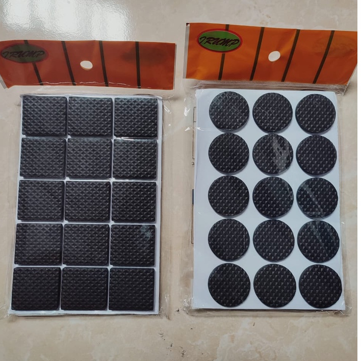 Pengaman furniture untuk kaki kursi, kaki meja, belakang pintu. Melekat dengan kuat, anti shock, soundproof, tahan lama, dan melindungi lantai/tembok dari gesekan2 kaki furniture. Bahan terbuat dari karpet.