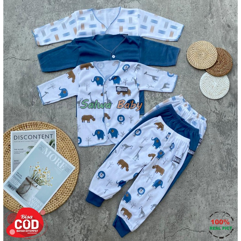 Fashion Bayi & Anak > Pakaian Bayi > Set > Isi 6 PCS Baju Celana Bayi / 3 Setel Baju Lengan Panjang Celana Panjang Usia 0-3 Bulan Seri Biru Denim Almeera Baby and Kids