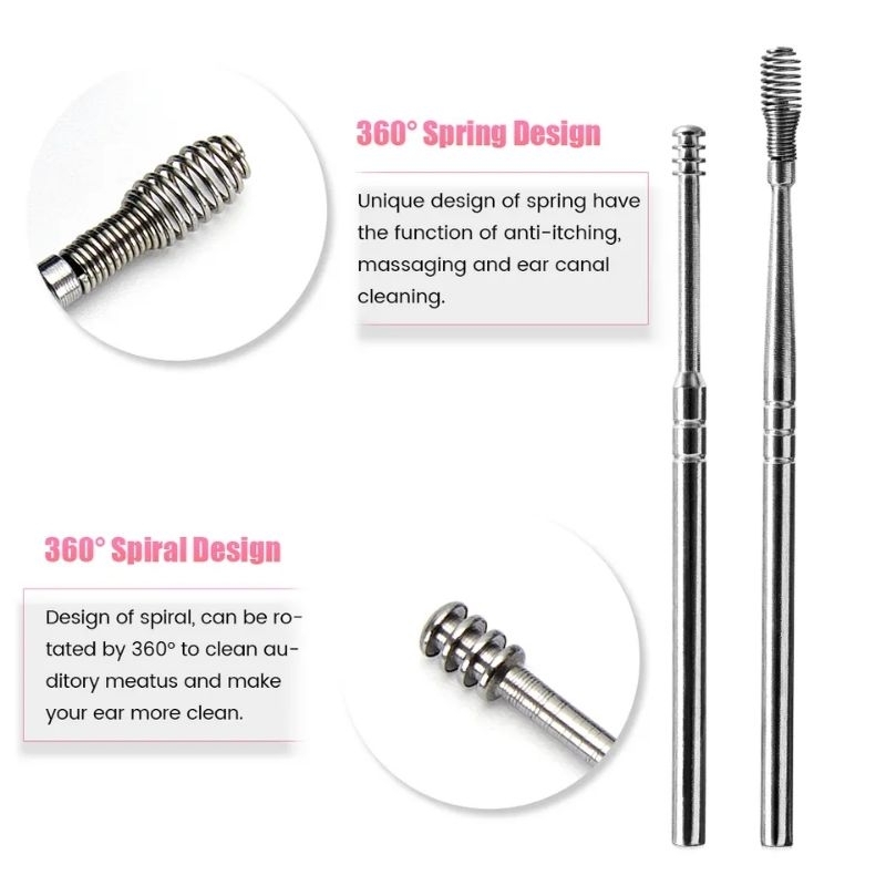 ✔ Stainless Steel Material Pembersih kotoran telinga ini terbuat dari bahan stainless steel sehingga tidak akan berkarat dan dapat digunakan dalam waktu lama. ✔ Portable Memiliki bentuk yang sangat kecil hanya 12 cm sehingga dapat dengan mudah disimpan. ✔ Wider Spoon Head Tangkai pembersih kuping dengan kepala sendok yang lebar membuat Anda dapat membersihkan kotoran telinga yang lebih keras atau sulit dikeluarkan ✔ Circular Spiral Head Tangkai korek kuping dengan kepala yang melingkar cocok untuk membersihkan kotoran telinga yang besar. ✔ Spring Type Spiral Head Korek kuping yang berkepala seperti per sangat cocok untuk membersihkan kotoran kuping yang lebih kecil.