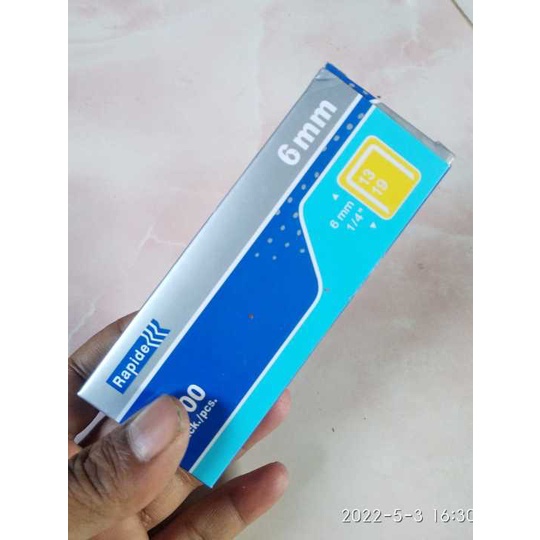 Staples / Paku Tembak / Staples Angin Merk : Rapide Type : 13/8 Dan 13/6 (STAPLES NAIL FOR R-23) Lebar : 10,6 mm Tinggi : 8 mm Isi per kotak : 5000 pcs