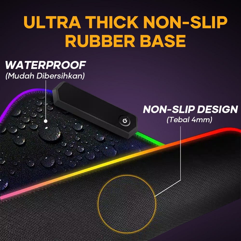 Mouse Pad Gaming Fitur: 1. Pembentukan presisi, permukaan halus secara efektif dapat mengurangi kelelahan yang disebabkan oleh penggunaan mouse yang berkepanjangan. 2. Jahitan pinggir yang halus dan tahan lama , setiap ujung di jahit rapat, sehinhha tidak mudah rusak dan tahan lamaγ 3. Mouse yang nyaman untuk bermain game, desain grafis, tekstur permukaan yang sangat halus. 4. Membantu meningkatkan akurasi pelacakan & klikγ 5. Bahan Tahan Lama dan Nyaman. Mengadopsi bahan karet alam dengan elastisitas tinggi, alas mouse ini akan memberi Anda pengalaman penggunaan yang maksimal. 6.Disertai dengan lampu led berwarna warni membuat mouse pad ini lebih hidup dan cocok untuk disandingkan dengan gear gaming Anda lainnya. Pengaturan LED juga dapat dilakukan dengan switch yang tersedia pada bagian panel yang terhubung dengan kabel USB sebagai sumber tenaga untuk lampu.