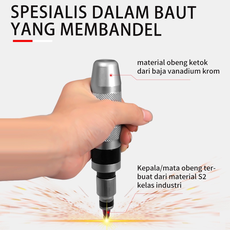 ISKU Obeng Ketok Set 13 Pcs, sering disebut oleh banyak montir di bengkel dengan istilah Impact driver, Obeng Getok, Obeng Gedor, dll. Obeng ini mempunyai kemampuan buka/ pasang baut/ mur yang sangat kuat. Hentakan martil/ palu membuat mekanis yang ada di dalam unit obeng menghasilkan suatu torsi kejut yang kuat memutar poros obeng。 sehingga dengan adanya Torsi kejut inilah yang membuat baut/ mur dapat dilonggarkan sekalipun sebelumnya terpasang sangat kencang/ rapat, begitu juga sebaliknya dapat mengencangkan baut/ mur dengan sangat kencang/ rapat.