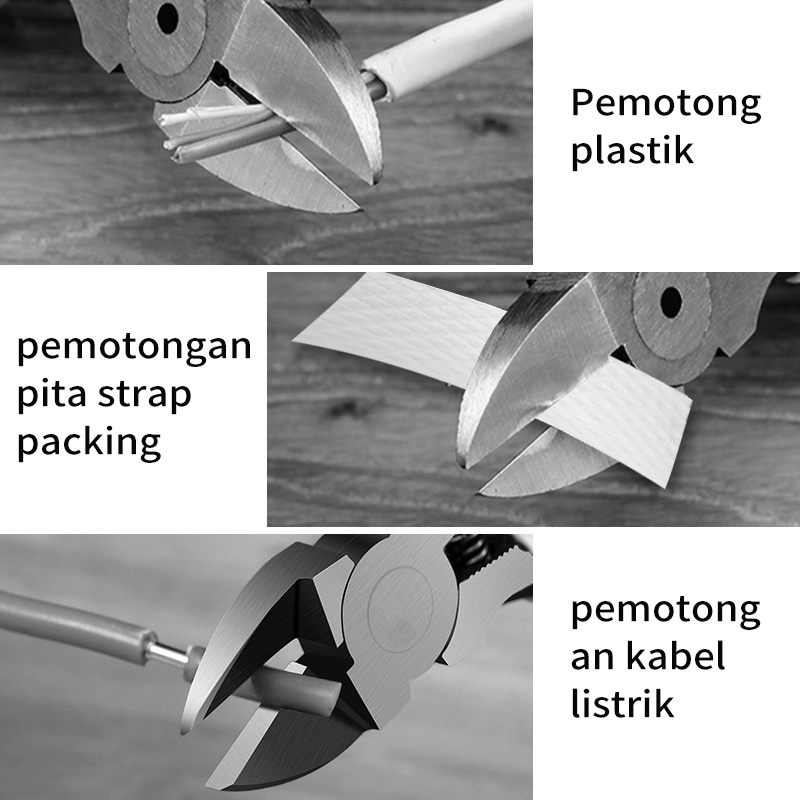 Kegunaan: Ini digunakan untuk memotong kabel multi-untai dan untai tunggal dengan diameter lebih tipis, serta menekuk sambungan kawat untai tunggal, mengupas lapisan isolasi plastik, memotong kaki elektronik papan sirkuit, memangkas produk plastik, memotong kabel logam kecil, dan untuk Elektronik, perbaikan industri perbaikan mobil dan pemrosesan perhiasan, dll.