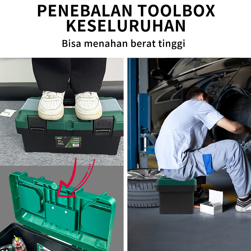 Kegunaan: -Sebagai tempat penyimpanan alat perkakas -Kepingan cold rolled steel, kuat dan tahan lama -Mampu menahan beban berat -Pegangan yang nyaman -Dengan 2 layer yang menyimpan lebih banyak - Tidak Mudah Rusak - Mudah Disimpan