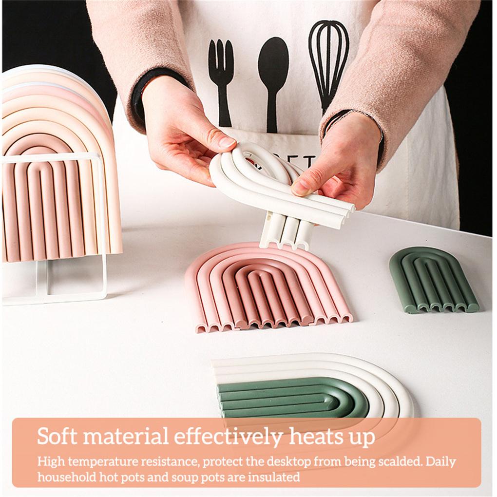Multifungsi: Bantalan cangkir anti-panas ini dirancang dalam bentuk pelangi, yang tidak hanya dapat melindungi panas tetapi juga menjadi dekorasi di meja makan.