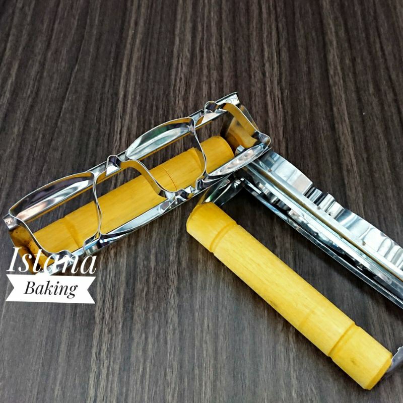 Perlengkapan Rumah > Peralatan Masak > Alat & Dekorasi Baking > Istana Baking Cetakan Kastengel Nastar Gandeng Gagang Kayu Stainless Model Candi