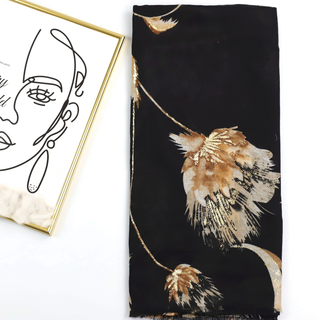 ITSFRIDAY GISELLE IN BLACK Scarf - Premium Pashmina Shawl Selendang Syal Pasmina Hijab Import Motif Tulip Flower Brown
