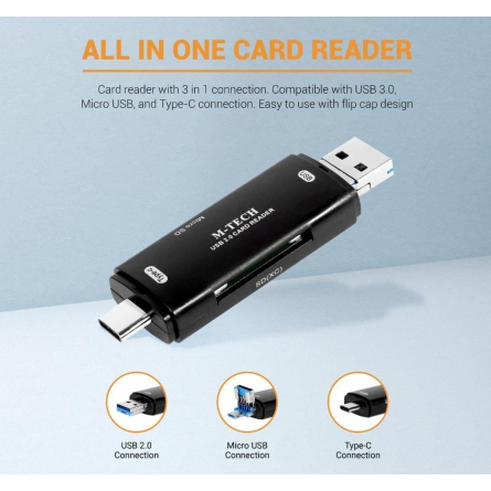 Detail ITSTORE MTECH ORIGINAL CR30 USB C CARD READER 2.0 MICRO USB 3 IN 1 SD CARD OTG