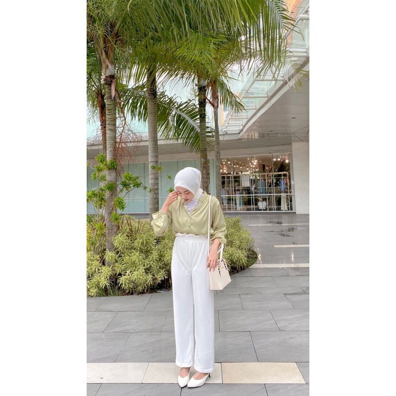 Bahan silk plisket Khusus brokenwhite ada lapisan furing Pinggang full karet