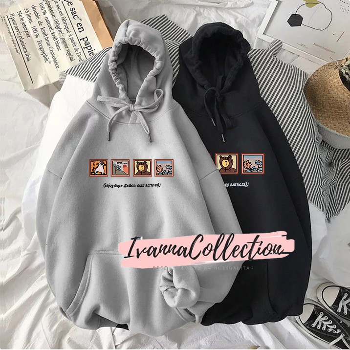 IvannaCollection Sweater Hoodie Wanita Pria Oversize Jaket Hodie Couple Pasangan Jumbo Enjog Dops