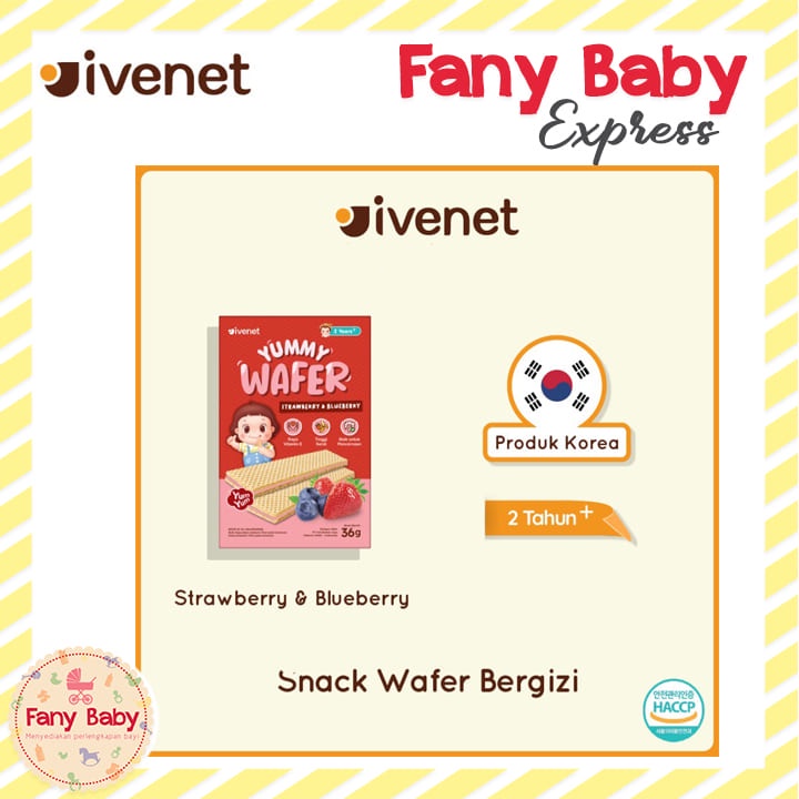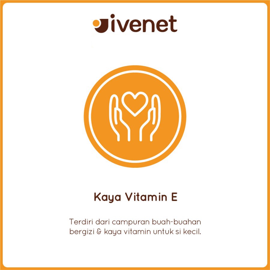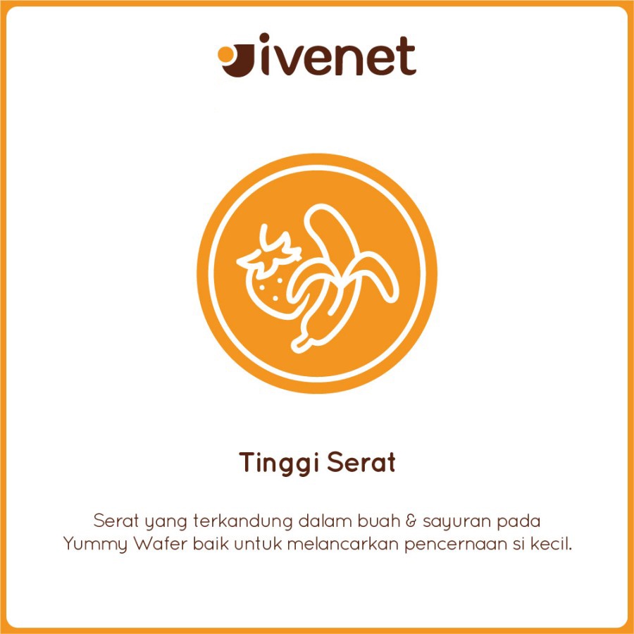Keunggulan Ivenet Yummy Wafer: Kaya Vitamin E Terdiri dari campuran buah-buahan bergizi & kaya vitamin untuk si kecil.