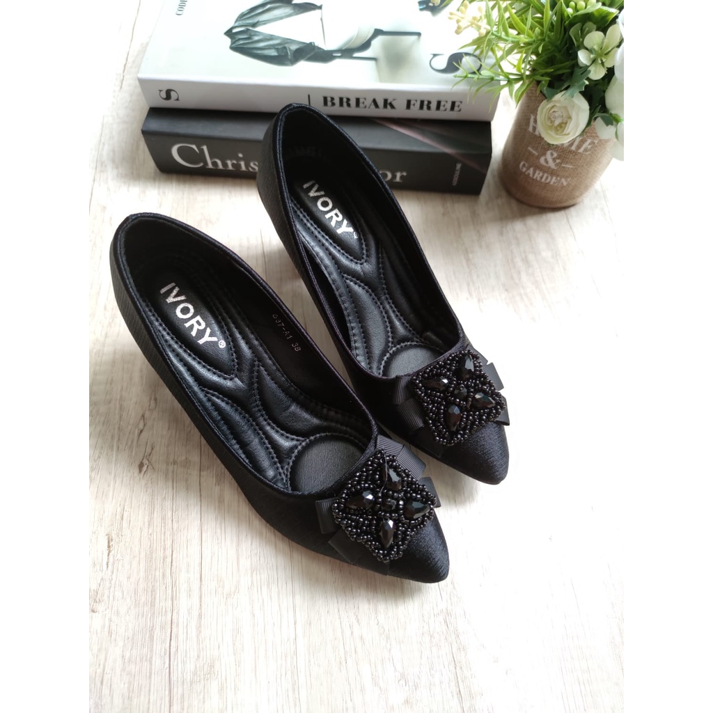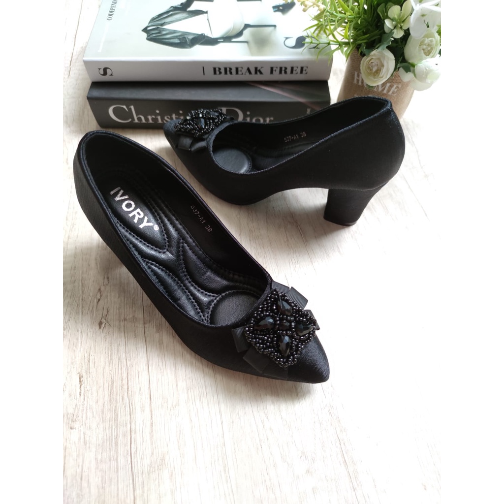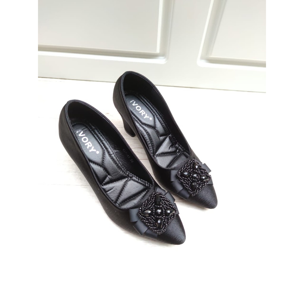 Merek : IVORY Kode : 537-A1 Warna : Black Material : Satin Tinggi heels : 7 cm Pointy Toe Size : 36 = 22.5cm 37 = 23cm 38 = 23.5cm 39 = 24cm 40 = 24.5cm
