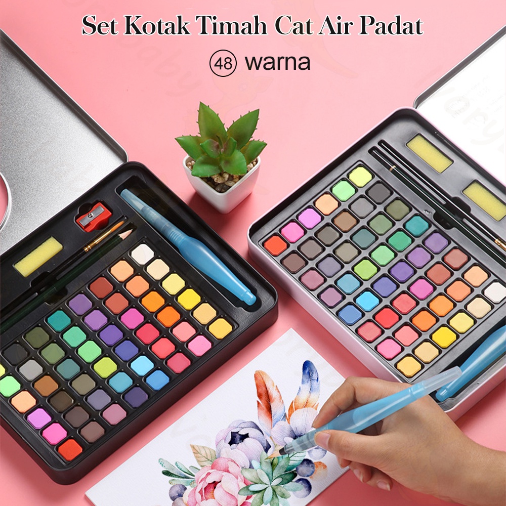 🎁Membeli set ini sudah termasuk: 48 Colors in gift box (9-piece set) ⭐1.48 colors watercolor paint * 1 ⭐2. Tap Water Pen * 1 ⭐3. Pencil Sharpenper * 1 ⭐4. Absorbent Sponge * 2 ⭐5. Nylon Brush * 1 ⭐6. 2B Pencil * 1 ⭐7. White Watercolor Pigment * 1 ⭐8. Flannel Bag * 1 ⭐9. Watercolor Paper * 8