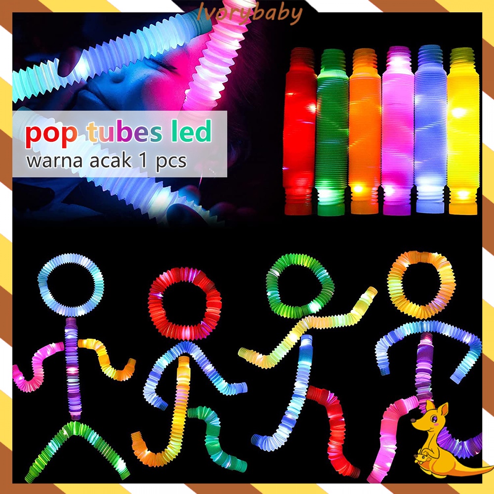 Detail Ivorybaby light up pop pipes led Mainan viral anak pop tubes Mainan lampu stick pipa selang