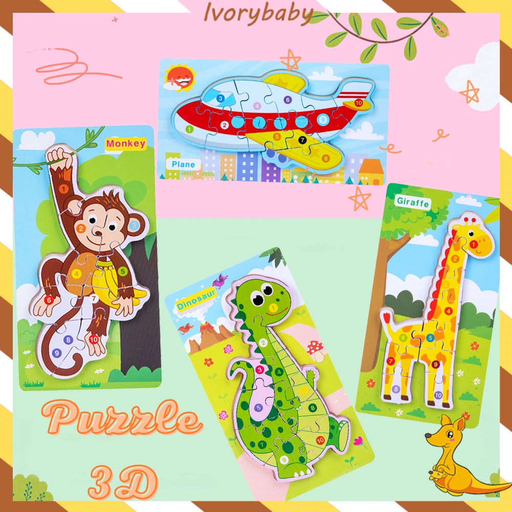 Detail Ivorybaby Puzzle kayu mainan edukasi Wooden toys kartun Jigsaw puzzle anak