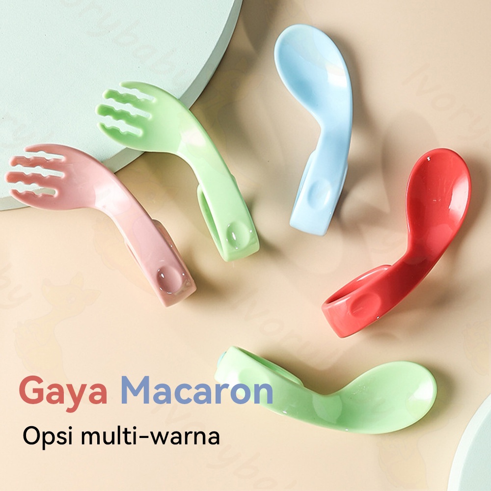 Ivorybaby Sendok garpu set bayi anak melengkung Sendok makan bayi anti slip Sendok makan anak belajar