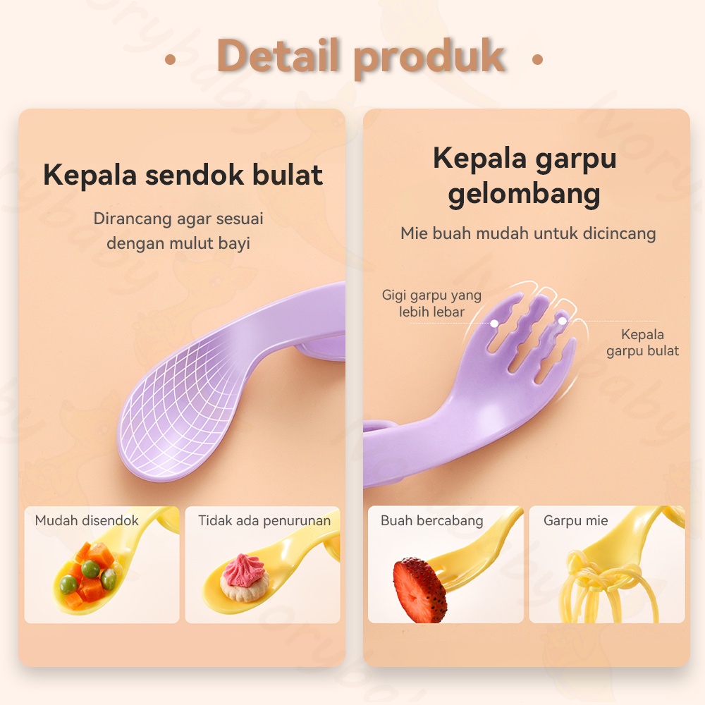 Detail Ivorybaby Sendok garpu set bayi anak melengkung Sendok makan bayi anti slip Sendok makan anak belajar