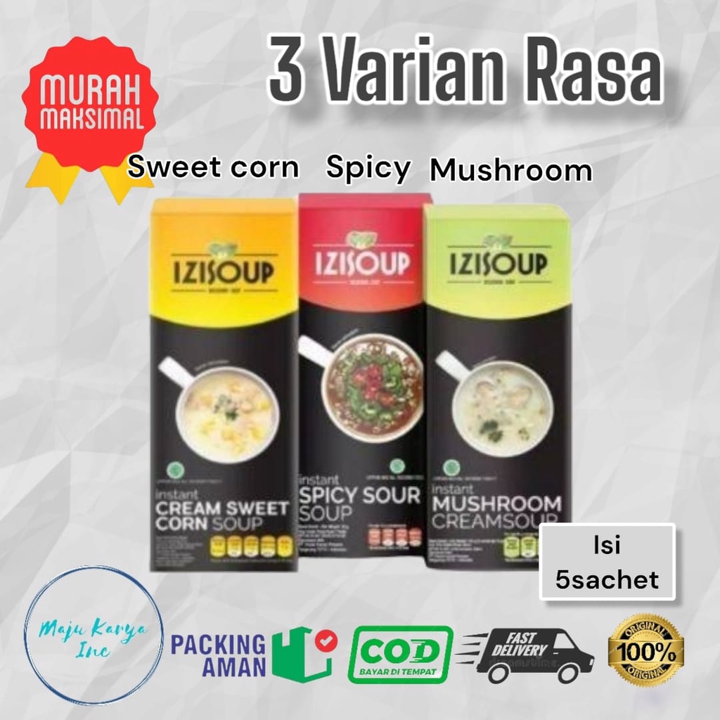 Izisoup adalah sup instan dengan bahan alami tanpa pengawet yang dapat dibuat dengan mudah dengan rasa yang enak. Tersedia dalam 2 pilihan rasa yang variatif dan unik, yaitu: 1. Prosana Izisoup Mushroom Cream Soup memberikan citarasa creamy dan gurih, yang dilengkapi dengan potongan roti kering (croutons). 2. Prosana Izisoup Spicy Sour Soup memberikan citarasa pedas dan asam bumbu szechuan, sehingga sangat cocok bagi kamu penyuka makanan pedas.