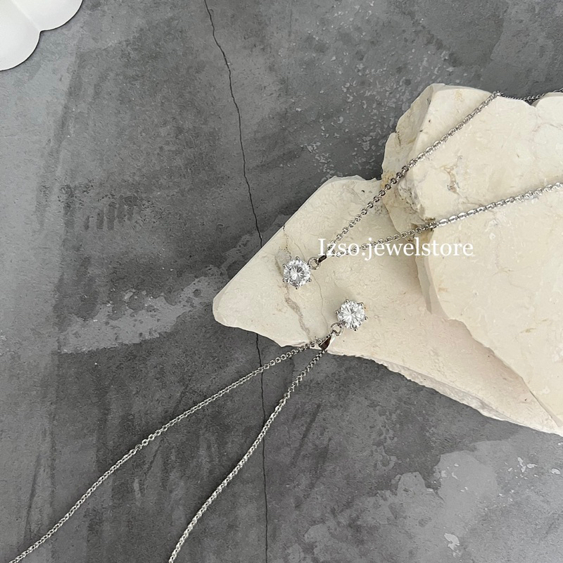 Detail Izso Kalung Silver Piedmont Necklace Kalung Anti Karat With Cubic Zirconia Crystal