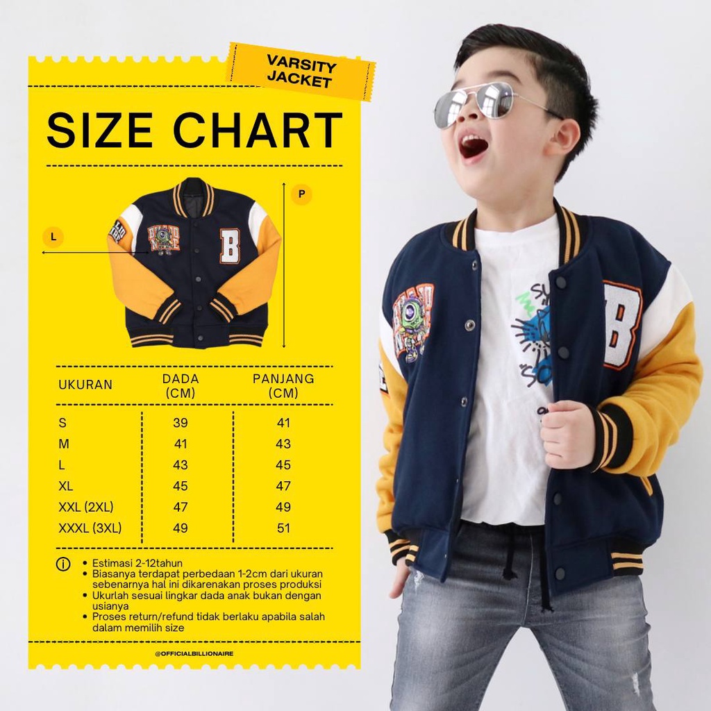 Yeayy koleksi terbaru dateng lagi nih buat pecinta billionaire, kali ini jaket yang superrrrr kerennn bakal nemenin kekerenan kamu. Sizenya juga banyak mulai dari 2th sampai 12th. Pass bgt deh buat couple kakak adik 🫰🏻