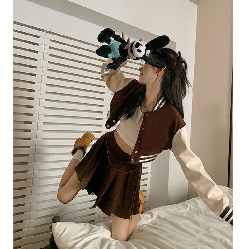 Detail jacket crop wanita retro lengan panjang jaket baseball wanita premium import jaket korean style outer basic jaket