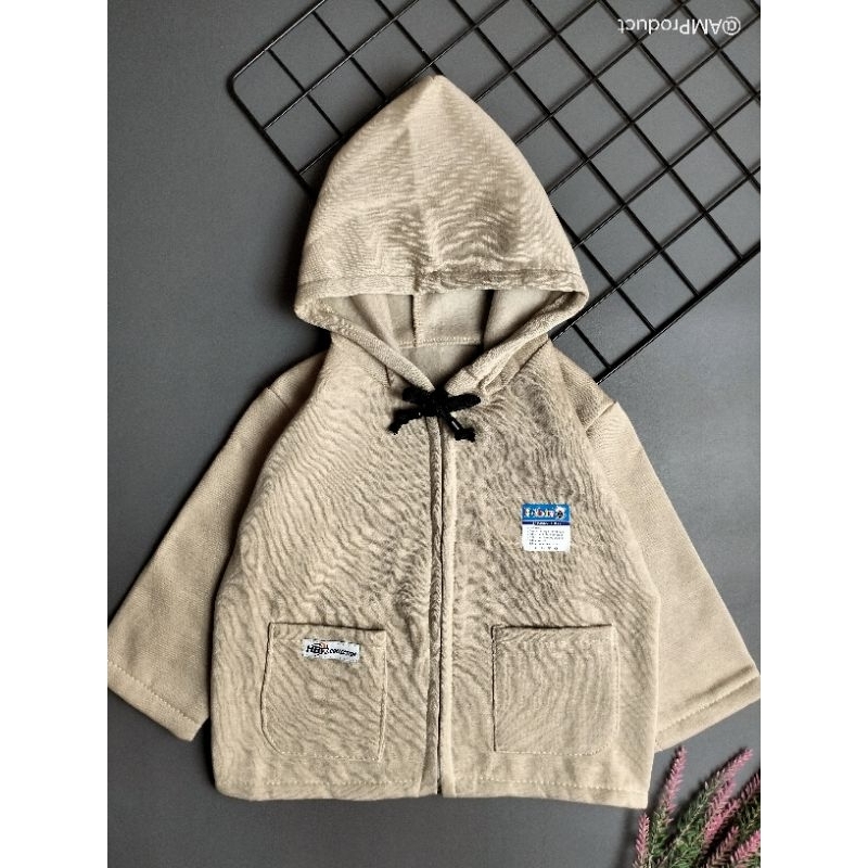 Detail jacket sweater mantel bayi fleece model tali saku 6-24 bulan