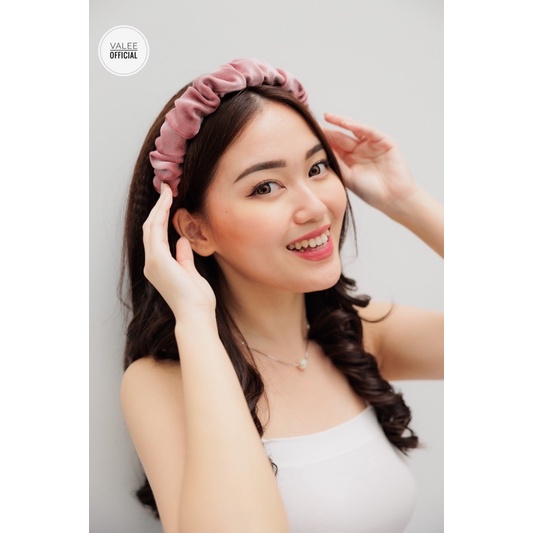 JADORE HEADBAND Material : Bludru Velvet Premium Berat : 28gr Bahan bando elastis jadi bisa di sesuaikan ukuran kepala Sangat cocok di pakai sehari hari / ke acara ulang tahun / pernikahan