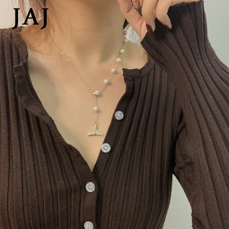 Detail Jahitan Fishtail Mutiara Kalung Wanita Musim Gugur Musim Dingin Niche Desain Sweater Rantai All-Match Klavikula Baru Pend