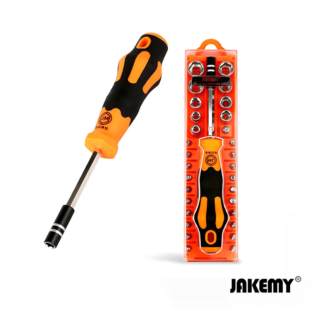 Jakemy JM-6095 Screwdriver Set hadir dengan 31 jenis kepala obeng dengan kualitas besi yang kuat dan tahan lama. JM-6095 dilengkapi dengan kotak untuk menyimpan kepala obeng dengan design yang ringan, dan mudah dibawa kemana saja.