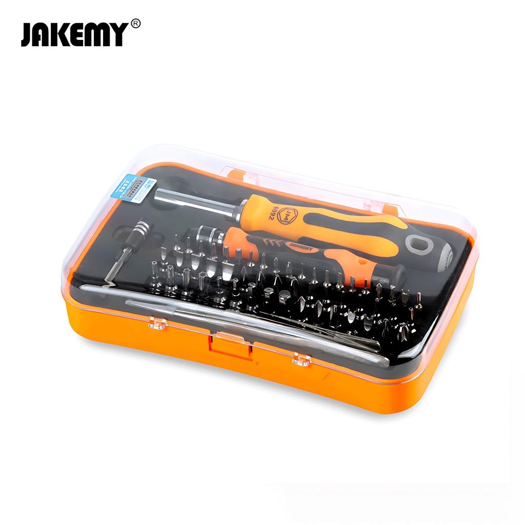 Jakemy JM-6092B Screwdriver Set hadir dengan 58 jenis kepala obeng dengan kualitas besi yang kuat dan tahan lama. JM-6092B dilengkapi dengan kotak untuk menyimpan kepala obeng dengan design yang ringan, dan mudah dibawa kemana saja.