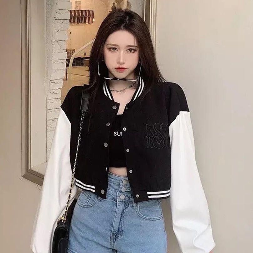 Jaket Baseball Crop Wanita - Bahan Fleece - Allsize - Varsity JacketJaket Baseball Crop Wanita - Bahan Fleece - Allsize - Varsity JacketJaket Baseball Crop Wanita - Bahan Fleece - Allsize - Varsity Jacket