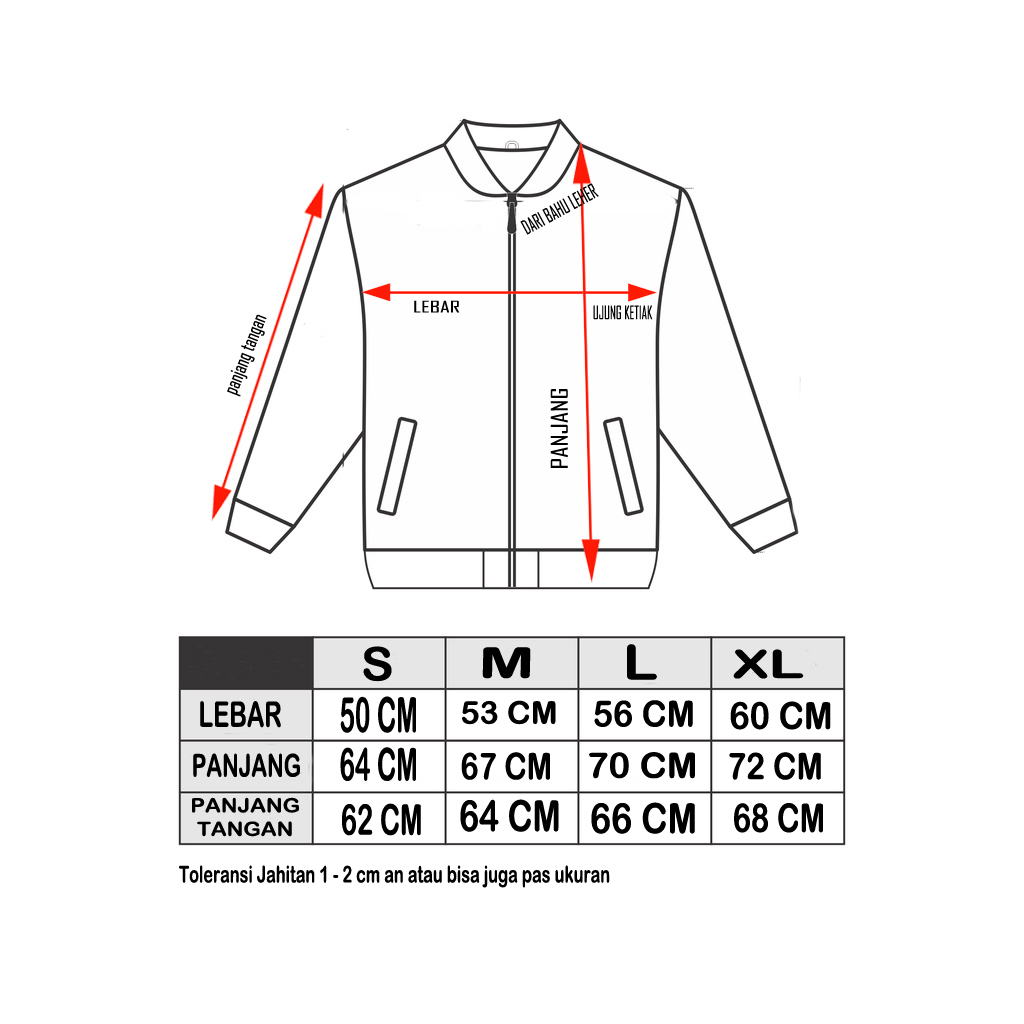 UKURAN : S : Panjang = 63 CM; Lebar = 50 CM; Panjang Lengan = 61 CM M : Panjang = 67 CM; Lebar = 53 CM; Panjang Lengan = 64 CM L : Panjang = 70 CM; Lebar = 56 CM; Panjang Lengan = 66 CM XL : Panjang = 72 CM; Lebar = 60 CM; Panjang Lengan = 68 CM ( toleransi jahitan 1-2 cm atau juga kadang bisa pas )