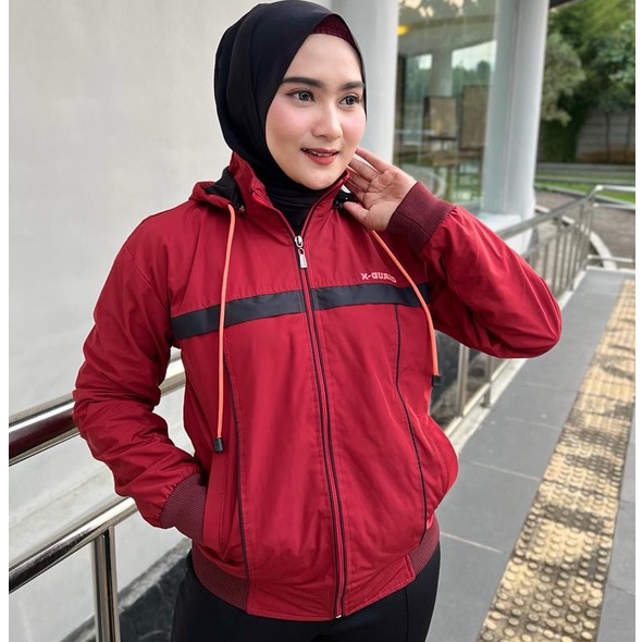 Pakaian Wanita > Jaket, Mantel, & Rompi > Jaket > Jaket Bomber Wanita Bahan Parasut Kombinasi Warna (X-Guard) | Gista Jaket Hoodie Wanita Terbaru Kekinian | Fashion Hits Kekinian OOTD Viral Terbaru