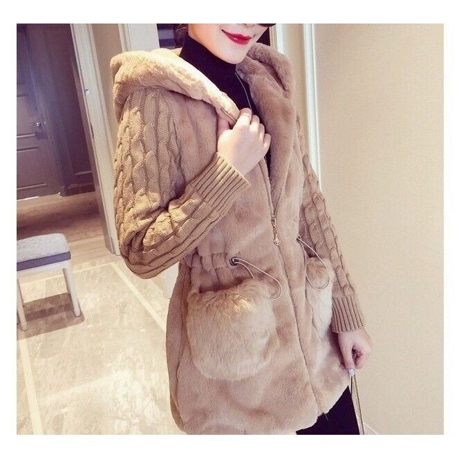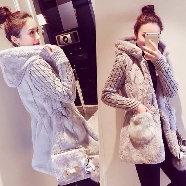 Detail Jaket Bulu tebal musim dingin wanita Winter fur Jacket Cardigan Hoodie women