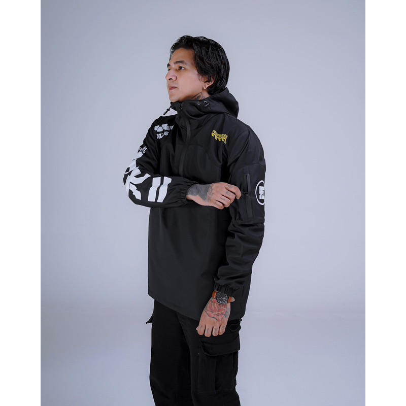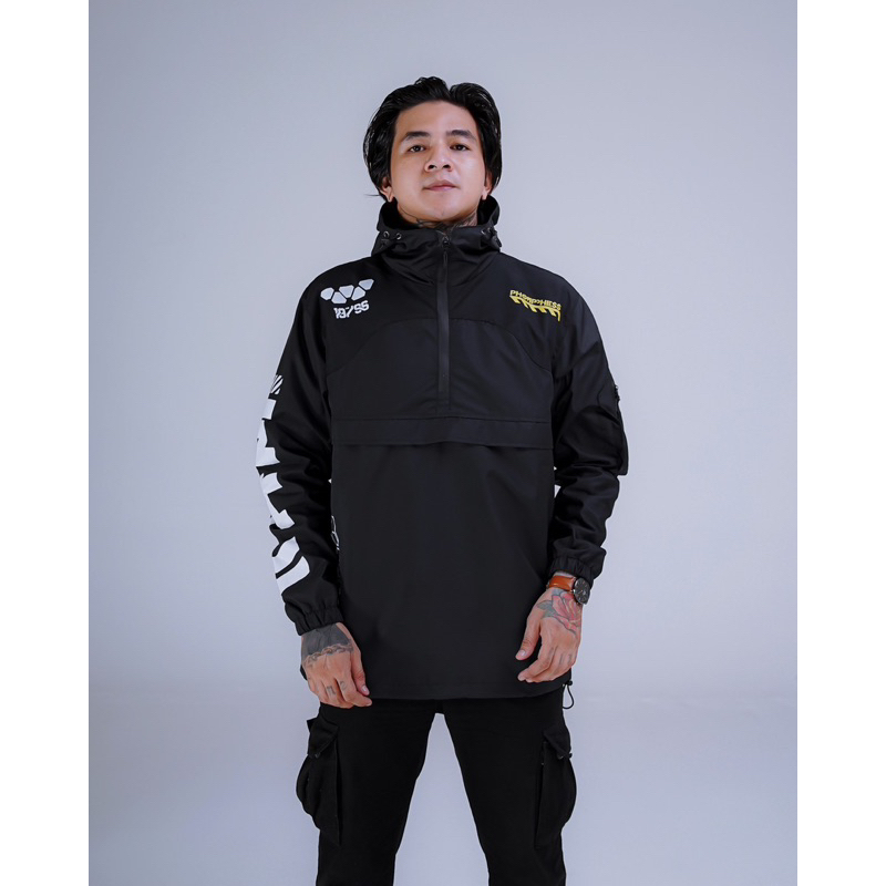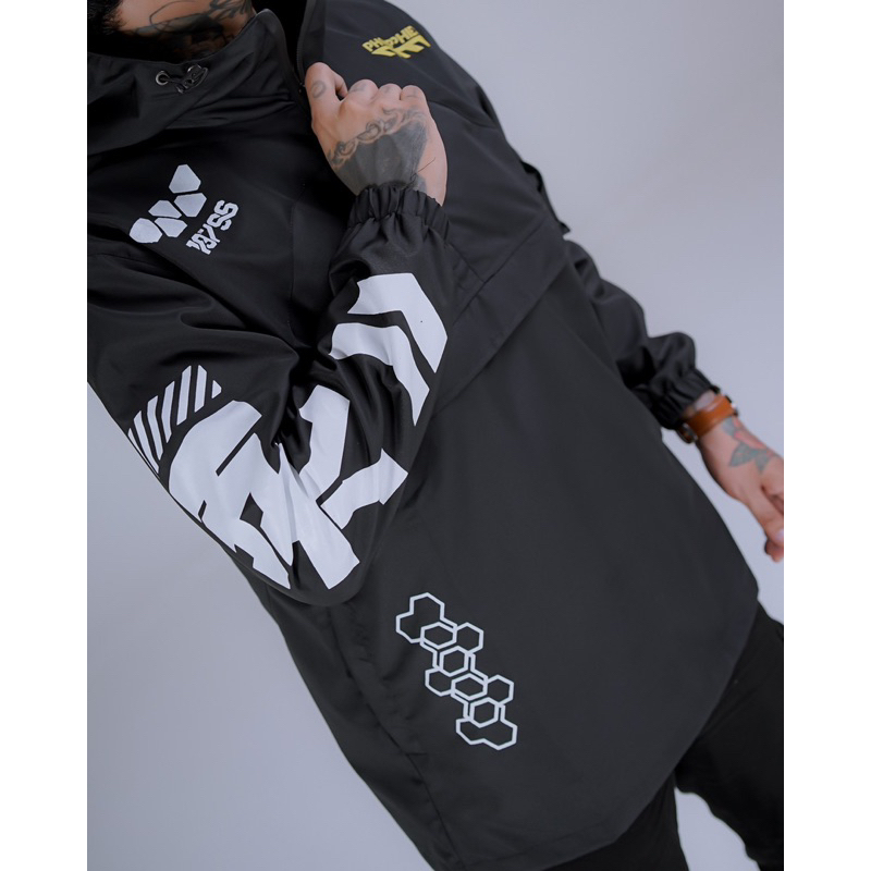 Detail PHOMPPHIESS Jaket Cagoule Sablon Hitam Jacket Waterproof Pria Wanita