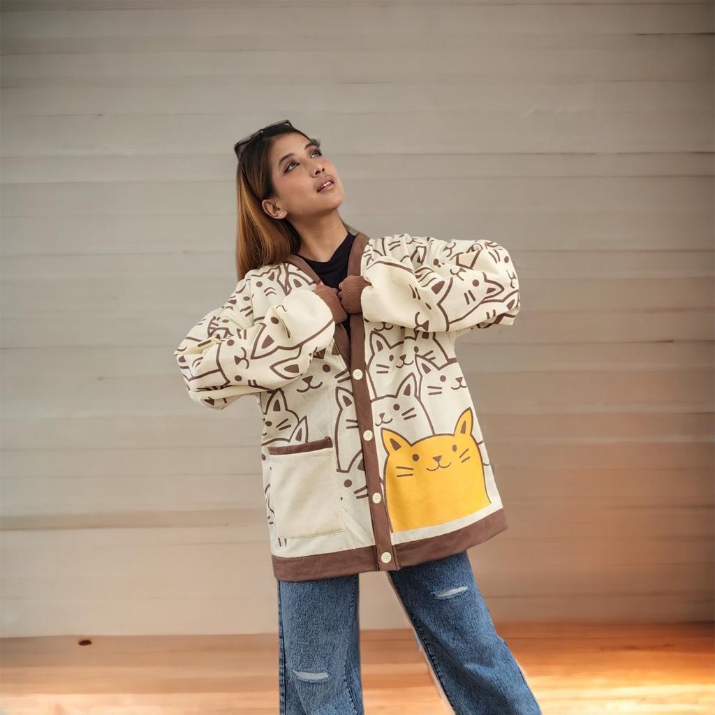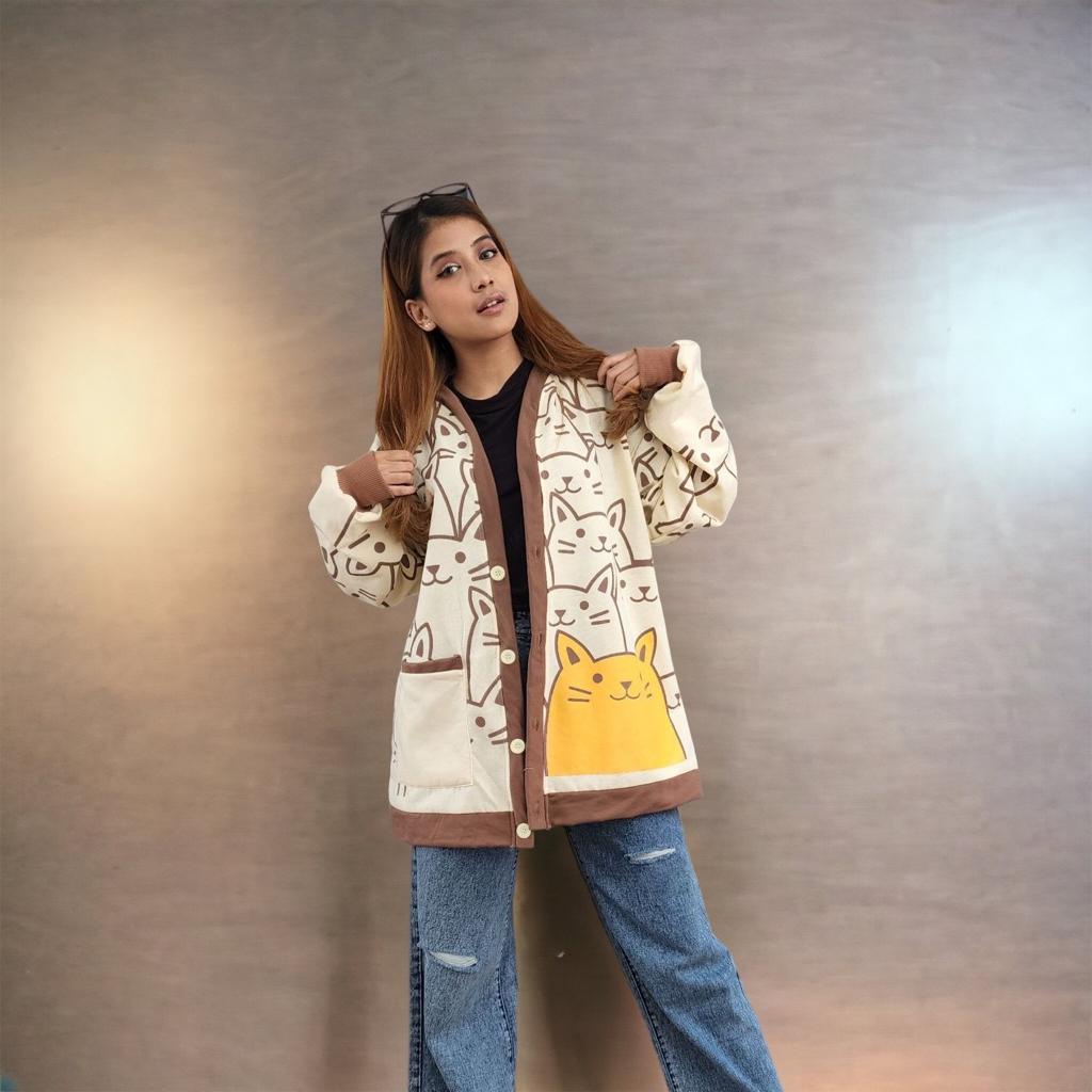 JAKET CARDY LUCU MOCCA CAT OUTHER // KARDIGAN WANITA KOREAN